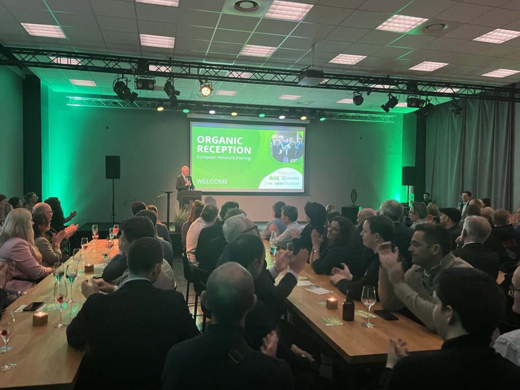 220 Bio-Akteurinnen und -Akteure aus ganz Europa leiten die Biofach auf der Organic Reception erfolgreich ein, einem Netzwerkabend der europäischen Verbände AöL, OPTA Europe, Pize, BioNederland und AsoBio, und diskutieren unter dem Motto „Greener Together“ die Weiterentwicklung des europäischen Bio-Markts.